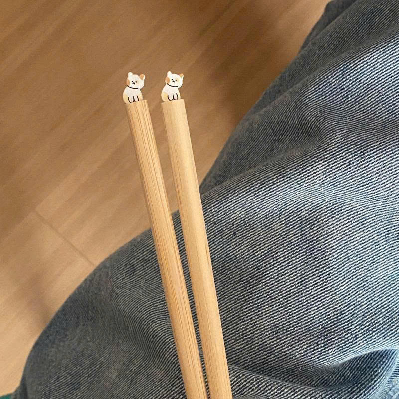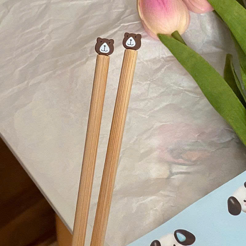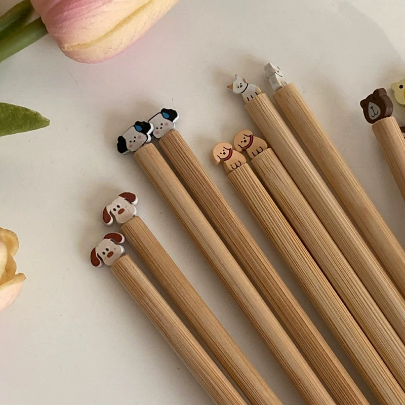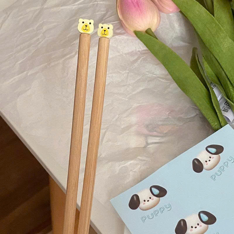 10 Đũa Gỗ Decor Hình Gấu, Chó Pony Sáng Tạo