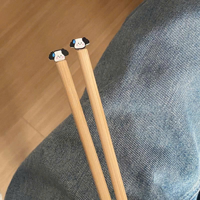 Thiết kế sáng tạo: Đầu đũa gắn charm các con vật (Cún con, Mèo, Gấu Custard...) được làm tỉ mỉ, màu sắc bắt mắt, không dễ bong tróc.