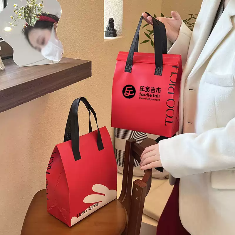 100 TÚI GIỮ NHIỆT MÀU ĐỎ IN HÌNH TAI THỎ (Giá của 100 túi)