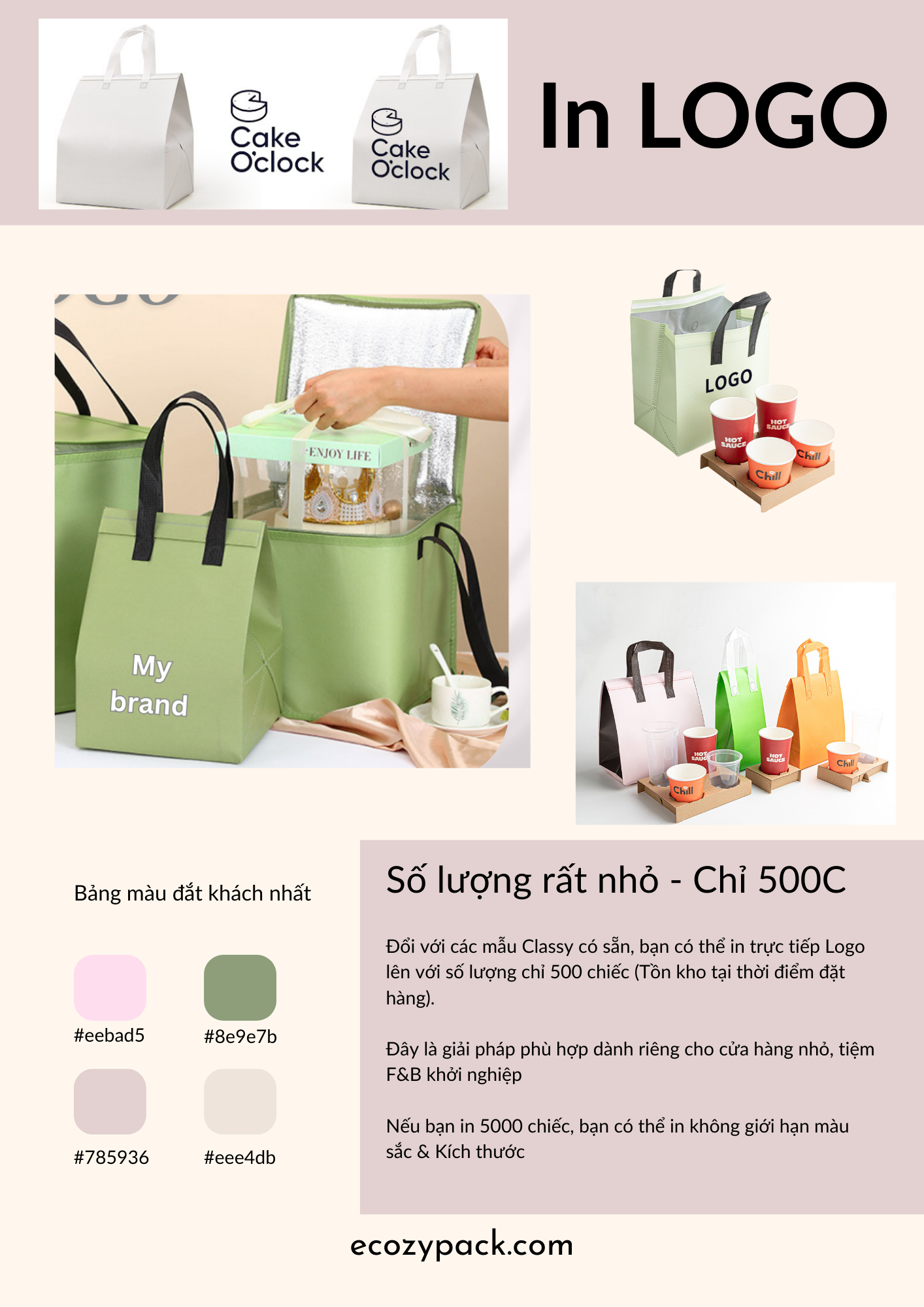500 TÚI GIỮ NHIỆT IN LOGO 1 MẶT 1 MÀU